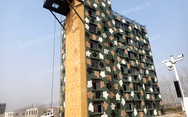 江蘇淮安某部攀登樓附屬設施順利完工!此項目主要包含攀巖墻、雨水管、避雷針、攀爬鋼梯及索降平臺...