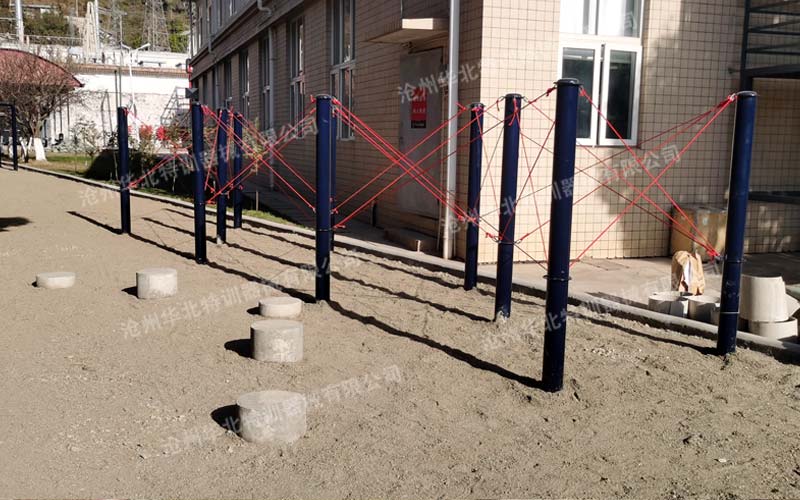 消防200米滅火障礙訓練場場地長100米,寬6米,面積600平方米。跑道全程200米,土質地面,有條件的可鋪設塑膠,共設置10個障礙物。分別為:高架速降、獨木跨橋、倒木翻越、塔頭跳躍、峭壁吊繩、陡坡沖刺、密林穿行、河流橫渡、翻山越嶺、跨越溝渠。
