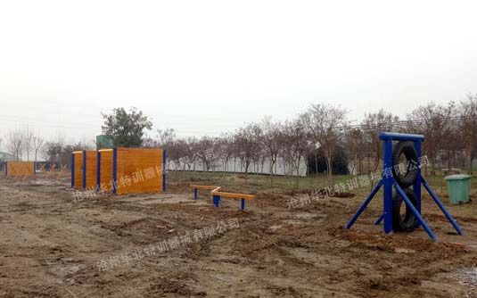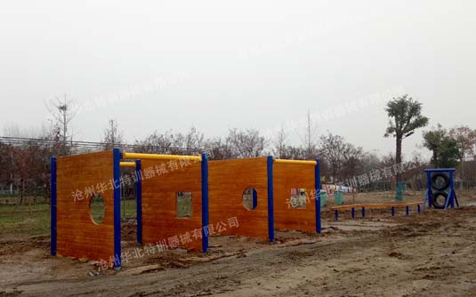 青少年軍事樂園障礙賽單道整體占地:45米長×4米寬,共有雙層輪胎、平衡過橋、障礙墻、跳躍輪胎、匍匐前進、翻越高墻6個項目。