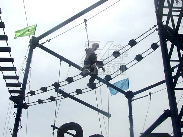 上一篇為大家分享了:拓展訓(xùn)練器材之獨木橋的介紹及意義,下面由華北特訓(xùn)攀巖墻廠家的小編為您分享:拓展訓(xùn)練器材之叢林繩橋的介紹及意義。 叢林繩橋常規(guī)5.7×12(高),占地12.7米×12.2米。叢林繩橋是單人挑戰(zhàn)項目,屬于高空拓展訓(xùn)練器材之一。有主保護人員檢查保護系統(tǒng),確認(rèn)沒有問題后,學(xué)員由立柱攀爬至叢林繩橋...
