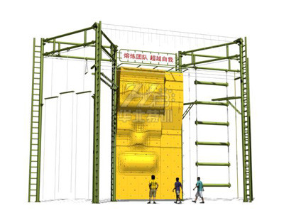 器械整體占地25.7米×11米×12.3米(高),最小場地需求27米×12米。 主要項目:攀巖、單杠、斷橋、天梯、獨(dú)木橋、梅花橋、合力橋、相互依存、叢林繩