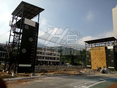 消防員攀爬橫渡組合訓練器械包含:速度攀巖、山岳救援、地下救援、繩索橫渡、懸垂下降、豎井救援等項目,由攀巖塔架、懸垂下降塔架及橫渡組成