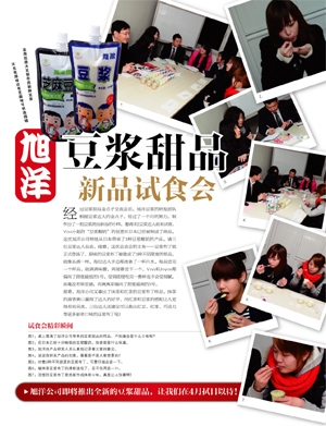 由日本拖拉克(toraku)公司(不二集團(tuán)公司)和上海旭洋綠色食品有限公司共同研制的以豆?jié){為原材料的新口味甜點(diǎn),最近組織了新品試吃活動。由于此次甜點(diǎn)的創(chuàng)意完全源自于旭洋重視的消費(fèi)者們,所以我們特別重視這次試吃活動上大家的給予的意見。試吃結(jié)束后,大家對新產(chǎn)品不約而同的豎起了大拇指,稱贊新產(chǎn)品的完成度非常的高,完全可以在市場上出售了。到預(yù)計新產(chǎn)品上市的2010年初夏,還有一些時間,我們會積極聽取大家的建議和意見,力爭把更優(yōu)質(zhì)的豆?jié){布丁呈現(xiàn)給大家!!