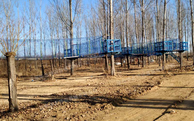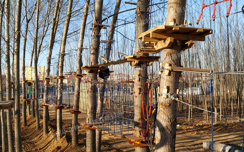 叢林穿越是通過在樹木與樹木之間搭建各種不同風(fēng)格,難易程度不同,超強刺激的拓展項目,利用專業(yè)的安全裝備體驗高空穿行,感受樹上攀爬與林間穿越的刺激,能有效的提高參與者的勇氣和自信心?梢允沟皿w驗者體會到不同于普通地面環(huán)境下的穿越感受。