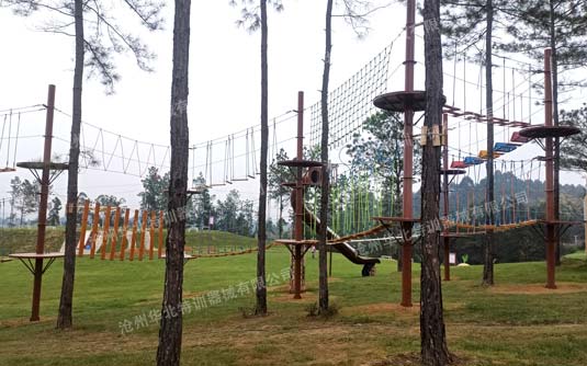 要求場地有大的樹木,樹木直徑要求大于20厘米以上,高度要求在6米以上,因為要在樹木上安裝站立平臺和架設項目,要求樹木能夠承受足夠的拉力。如果樹木過細高度不夠,就需要架設仿真樹木或鋼構的立柱來替代樹木。