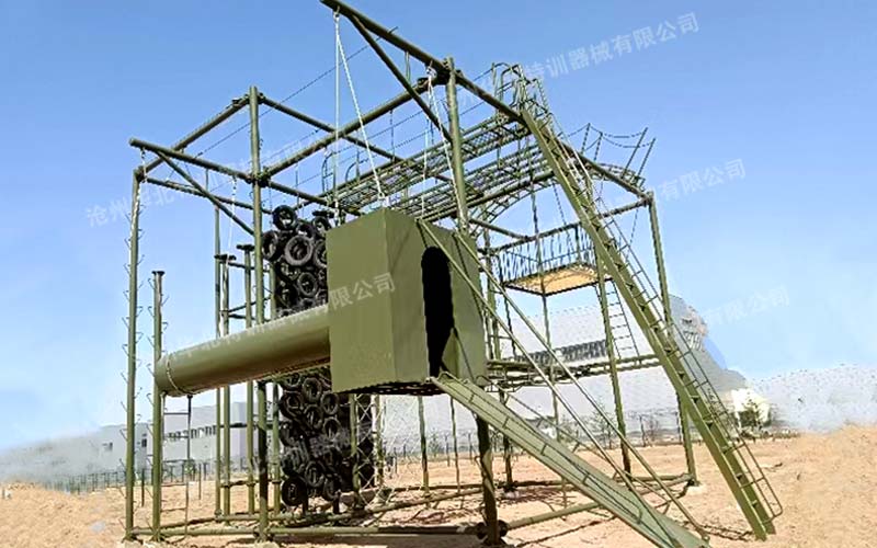 反恐綜合訓練架常規項目間距6米,總高9米。主要項目包含:單杠、斷橋、天梯、吊索橋等幾十多種單項。可根據場地大小和訓練需求選定項目進行定制。