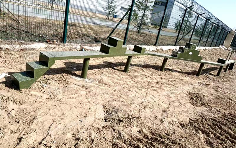 北京某部心理行為訓練場主要項目包含反恐綜合訓練架、禮讓通行、蒙目障礙、信任背摔等,現已建設完成并投入使用。
