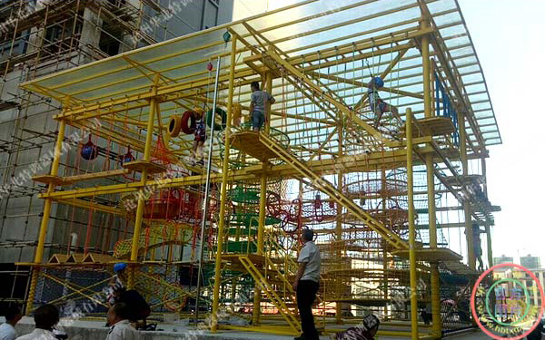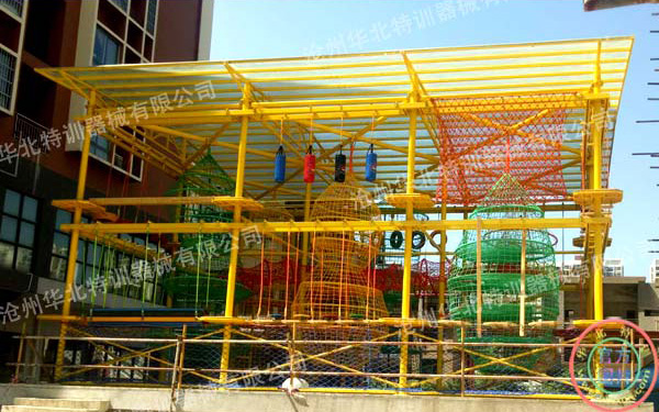 桂林市臨桂區(qū)時代楓林兒童拓展樂園是客戶經(jīng)過前期的考察,經(jīng)過綜合對比最終確定由我方(華北特訓)承建。我方根據(jù)使用方的場地、預算及要求和我公司從事拓展基地建設(shè)十多年來的經(jīng)驗,再對拓展市場需求詳細分析之后,推薦設(shè)計。最終確定方案為兒童雙目兩層加攀巖的綜合拓展架,現(xiàn)已建設(shè)完成并投入使用。
