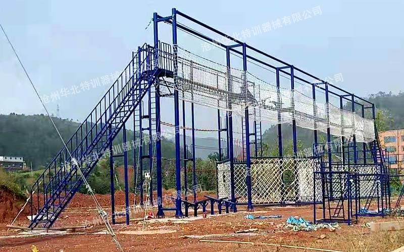貴州省惠水縣財經大學商務學院為提高學院師生心理及身體素質打算建一個針對性的拓展基地,經過前期的考察和綜合對比最終確定由我方(華北特訓)承建。我方根據使用方的場地、預算和院校師生的訓練強度要求和訓練目的設計定制,F已建設完成。