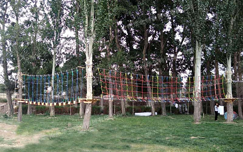甘肅金昌市綜合拓展基地主要建有經典高空組合項目--高空四面體,地面拓展器械和叢林探險項目。現已建設完成并投入使用。