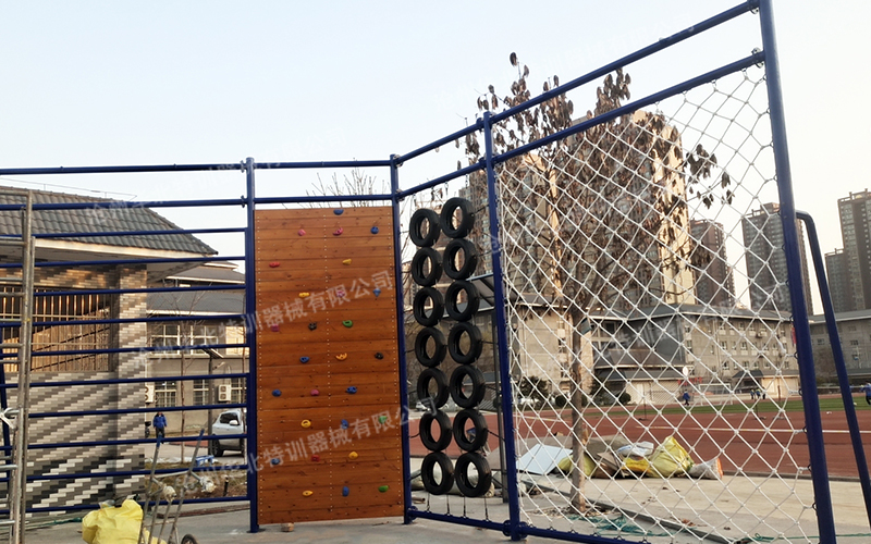 此拓展基地主要包含主要包含:攀巖墻、獨木橋、翻山越嶺、冒險橋、風雨橋、彩虹蕩橋、攀爬組合架。現已建設完成并投入使用。