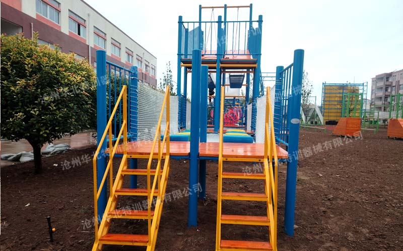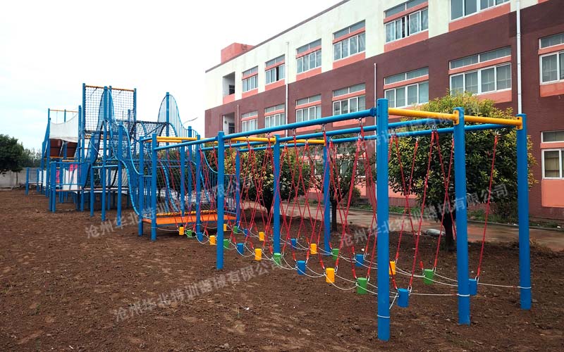 吊樁橋:由多個懸掛在繩索上的木樁組成,參與者需要踩著吊樁依次通過。吊樁會隨著參與者的步伐晃動,增加了行走的難度和不穩(wěn)定性,需要參與者具備良好的平衡感和節(jié)奏感,才能順利通過。
