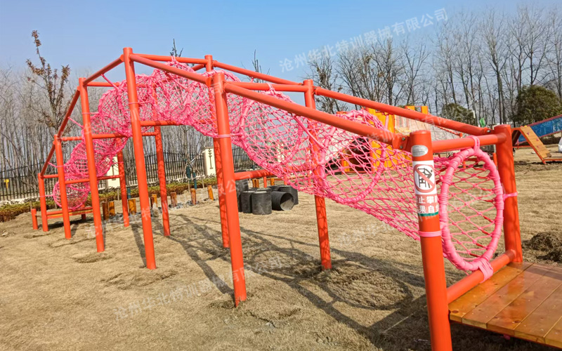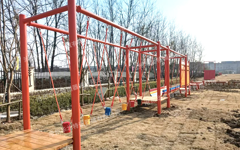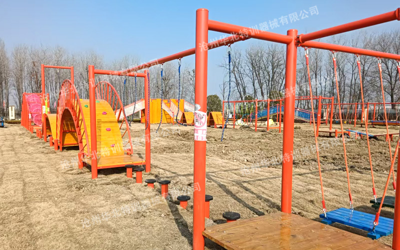 此款重走長征路游樂設備規格:場地需求35米長×32米寬,器械 33.45米長×30米寬。項目寬1.2米,最高點3.5米。主要包含:水平網、橫移墻、時空穿越、吊樁、爬網、曲折橋、圓木秋千等24個項目,可根據場地情況針對性定制不同規格,選擇不同項目。