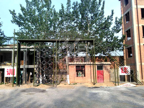 整體尺寸:占地17米長×5米寬。器械主體尺寸16.4米長×1米寬×7.5米高,平臺高度6米。主要