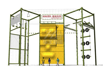器械整體占地27米×9米×12米(高),最小場(chǎng)地需求30.6米×10米。 主要項(xiàng)目:合力橋、單杠、斷橋、天梯、蕩木橋、繩網(wǎng)、吊索橋、相互依存、叢林繩、絕壁橫墻、
