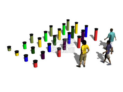 隊員依次走過梅花樁,不能遲疑停留,小心摔倒,隊員中有一個人下樁則團隊所有成員重新來過。