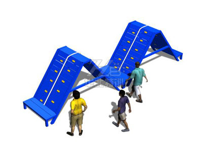參訓人員由翻山越嶺的一端爬至最高點,再由另一端下至地面