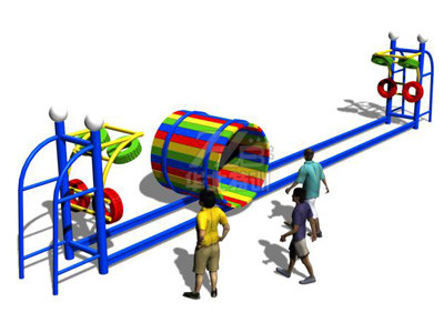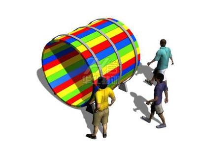 參訓人員站在桶內向前慢慢走動,利用身體重心的改變使滾筒快速轉動。