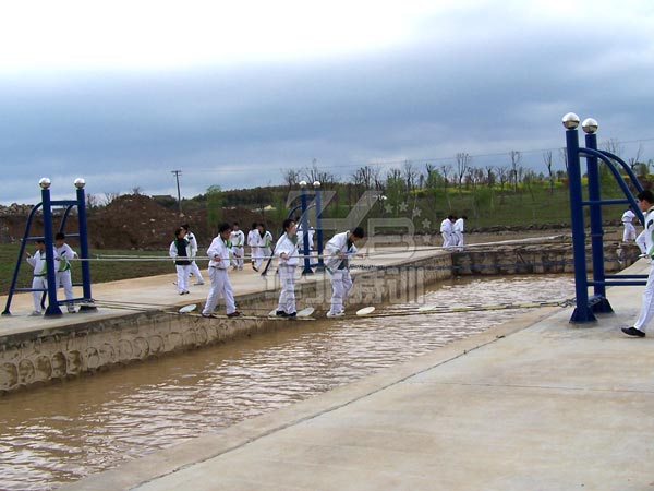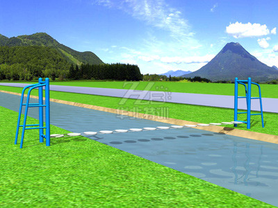 雙腳踩在特制冰片上(特制冰片固定在鏈條上)在沒有任何扶手的情況下抵達對岸