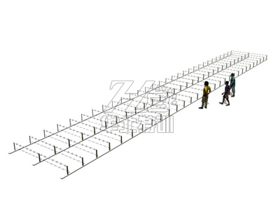 泥潭(石子)鐵樁網。分2道,每道長30米,寬2米,高0.5米。左側為泥潭鐵樁網,高0.4米,下鋪泥漿;右側為砂石鐵樁網,高0.5米,下鋪砂石