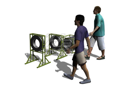 7個汽車外胎(型號:900-20),模擬成3個高度不同的山洞